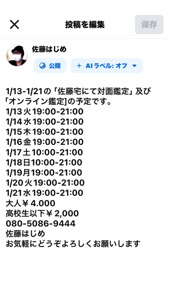 2026年1月12日 / 最終更新日時 : 2026年1月12日 hazime.sato 占い 1/13-1/21 までの予定です。 受付時間[電話10:00-22:00] [メールフォームからのオンライン予約 24時間] 予約日時指定でのご予約※今日、明日お急ぎで鑑定を希望の際は必ずお電話にてご予約くださいませ 080‐5086‐9444料金¥4.000(50分間迄)高校生以下\2.000 御予約、お問い合わせ、飛び入り鑑定、相談随時お待ちしております。 それでは良い1日を。 #占い #占い師 #石岡市 #鉾田市 #鹿嶋市#神栖市 #水戸市 #手相 #つくば市 #土浦市 #タロットカード #気学